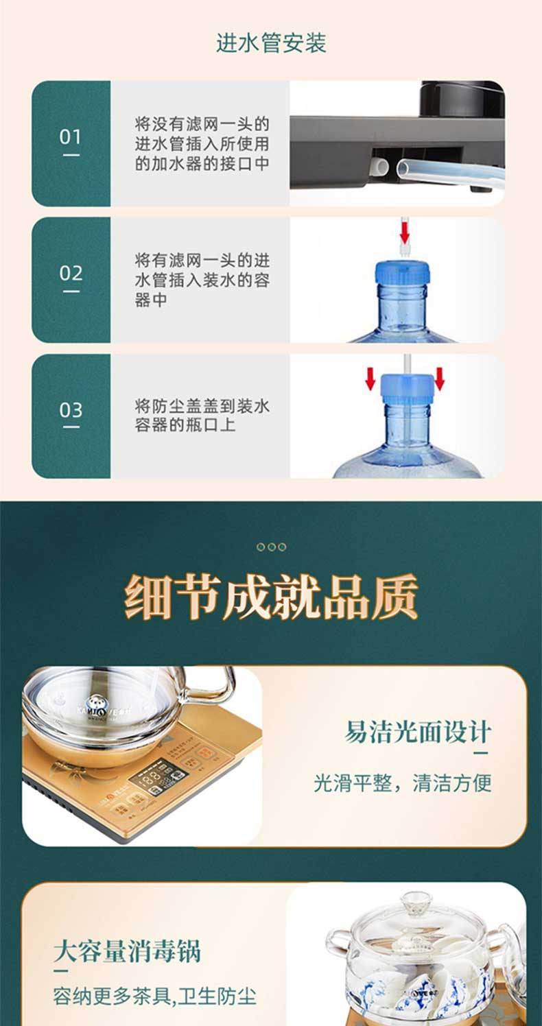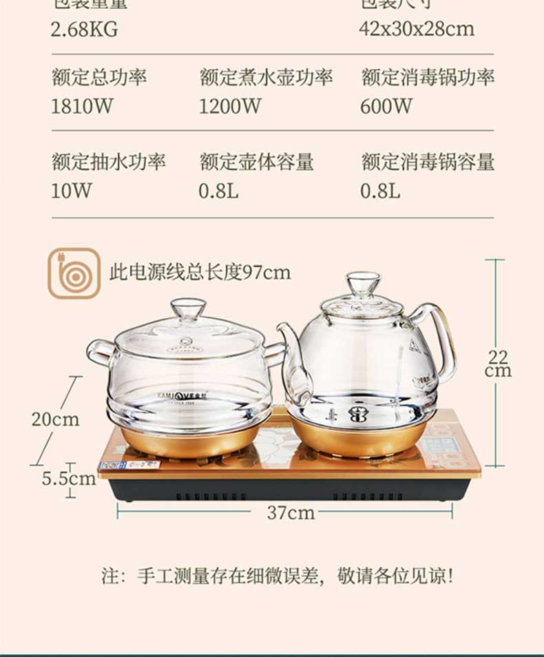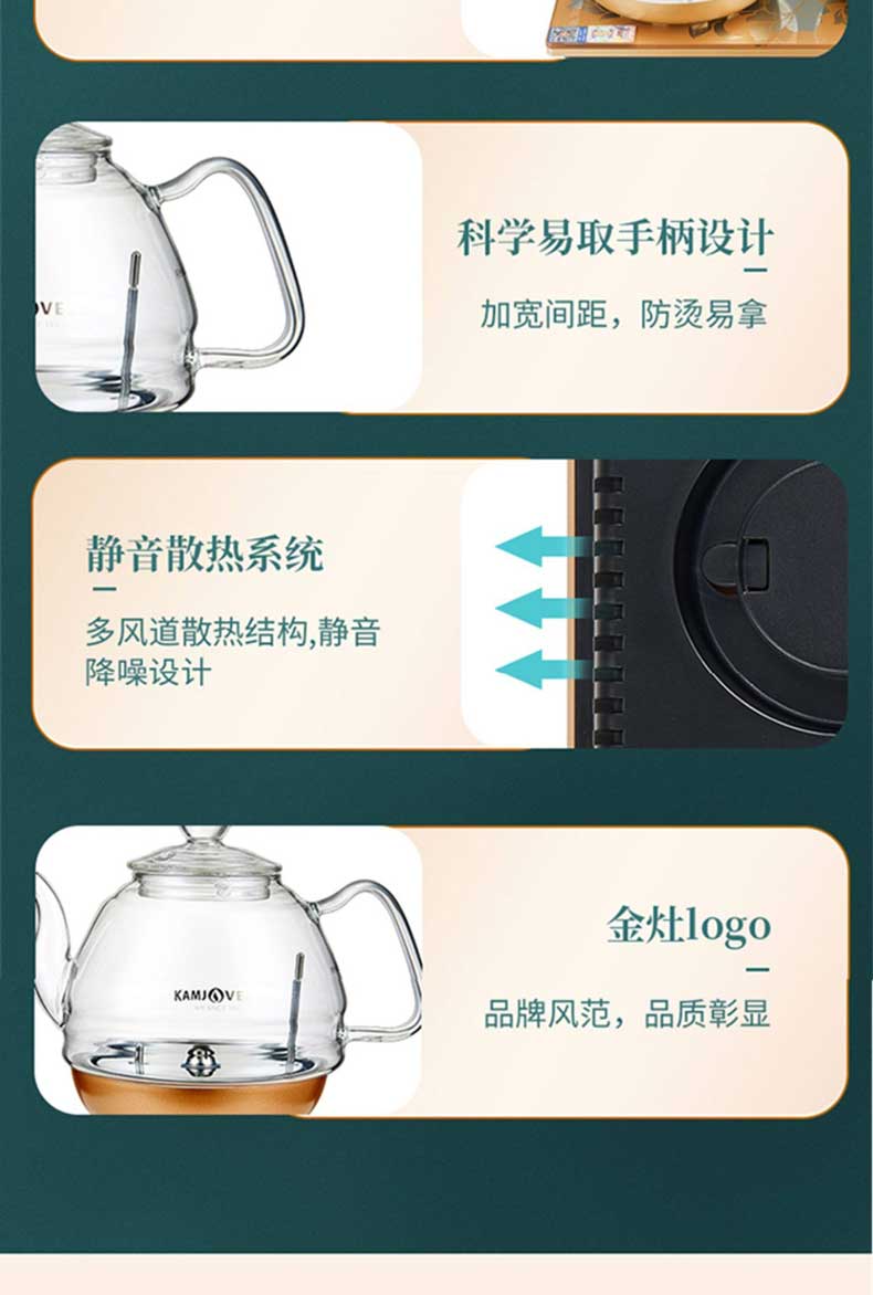 金灶全智能三合一玻璃电茶壶 底部上水