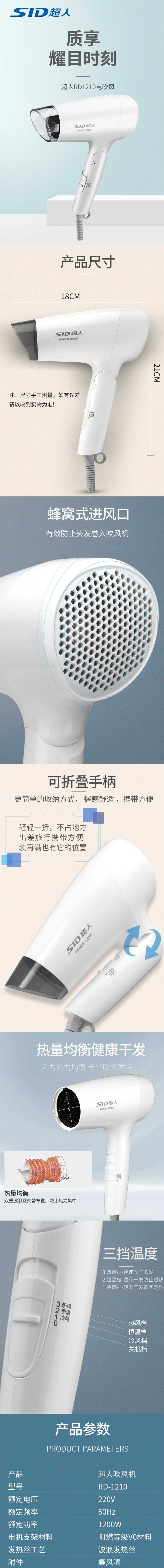 单位:个 RD1210 吹风机1200w折叠吹风机小巧便携风筒,三档可选,质保一年。