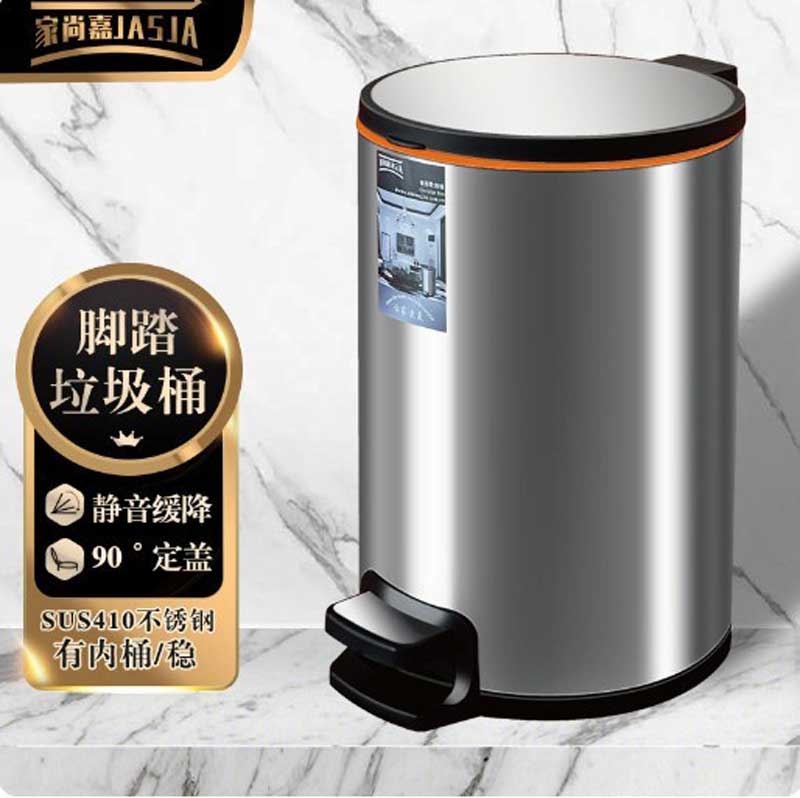 家尚嘉圆形不锈钢脚踏垃圾桶 8L