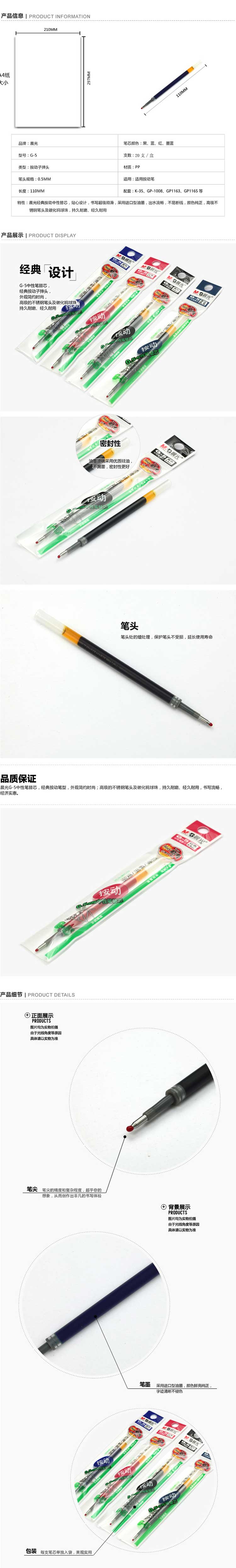 单位:支 G5子弹头笔芯/中性替芯 包装率1/20/240